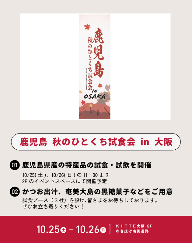 10/25~10/26「鹿児島 秋のひとくち試食会 in 大阪」