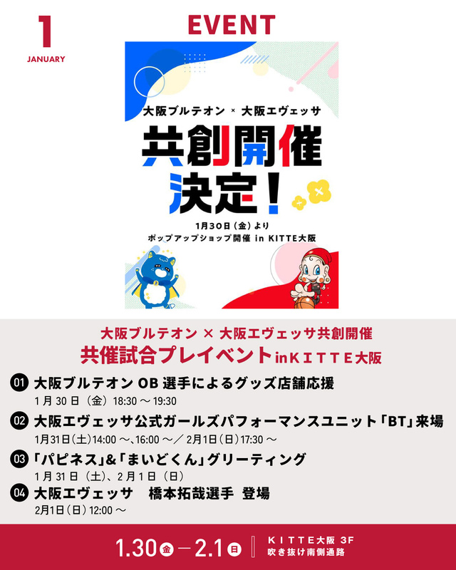 大阪ブルテオン×大阪エヴェッサ共創開催 共催試合プレイベントinKITTE大阪