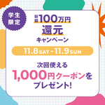 総額100万円還元キャンペーン ~次回使える1,000円割引券をプレゼント~