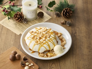 塩キャラメルとマカダミアナッツのチーズホイップパンケーキ