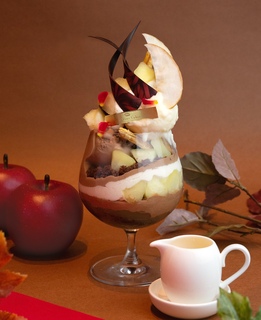 フランボワーズや柑橘を思わせる華やかな酸味と香りが特徴のマダガスカル産カカオ豆に旬の瑞々しく甘みの強いりんごを組み合わせたパフェです。 ジンジャーやナツメグのスパイスをアクセントに加え、りんごとの絶妙な調和をお楽しみ下さい。