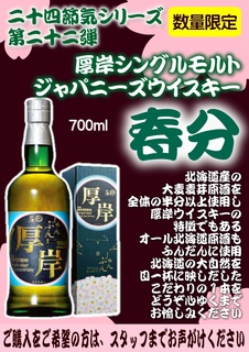 北海道産の大麦麦芽原酒を全体の半分以上使用し、さらには、厚岸ウイスキーの特徴でもあるオール北海道原酒もふんだんに使用いたしました。北海道の大自然を目一杯に映しだした、こだわりの1本をどうぞ心ゆくまでお愉しみください。※購入の際は身分証のご提示をお願いたします。※20歳未満のお客様には販売いたしません。