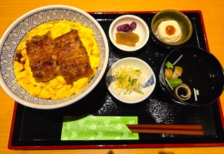 平日お昼限定11時~15時 数量限定40食 期間限定(時期により内容を変更することがございます。) しっかりと出汁がしみ込んだふわふわ&とろとろの卵の上に鰻2切れをのせました。 お吸い物、お漬物、ランチ限定の小鉢、ミニデザート付きでとってもお得です! 是非ご賞味ください‼
