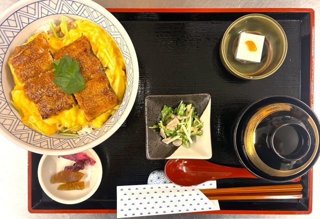 「お昼限定」土日祝も販売‼ しっかりと出汁がしみ込んだふわふわ&とろとろの卵の上に炭香る鰻2切れをのせました。 お吸い物、お漬物、うなぎサラダランチ、デザートにミルク寒天もついてとってもお得‼ 是非ご賞味ください‼
