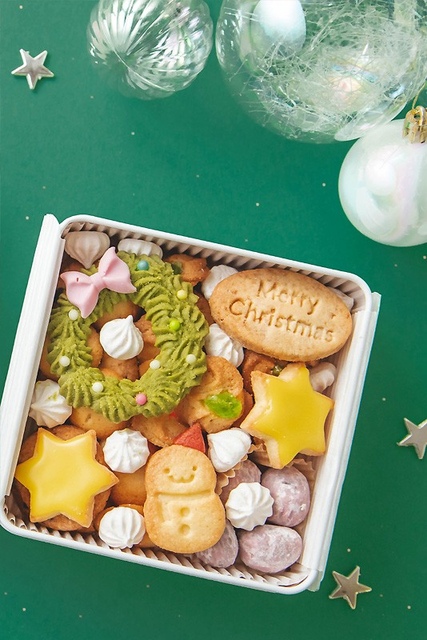 HANAMATOIKITCHENが贈る、かわいいスノーマンやリースのクッキーと人気の焼き菓子をぎゅっと詰め込みました。 色とりどりのクッキーで、楽しくおいしいクリスマスのひとときをお届けします。