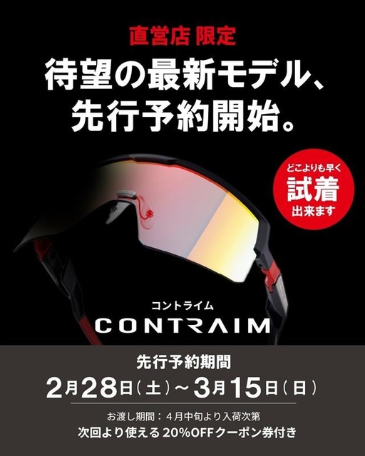 待望のSWANS 最新モデル CONTRAIM(コントライム)先行予約開始 先行予約期間 2月28日(土)~3月15日(日) お渡し期間:4月中旬より入荷次第 どこよりも早く試着可能!是非この機会にご来店ください